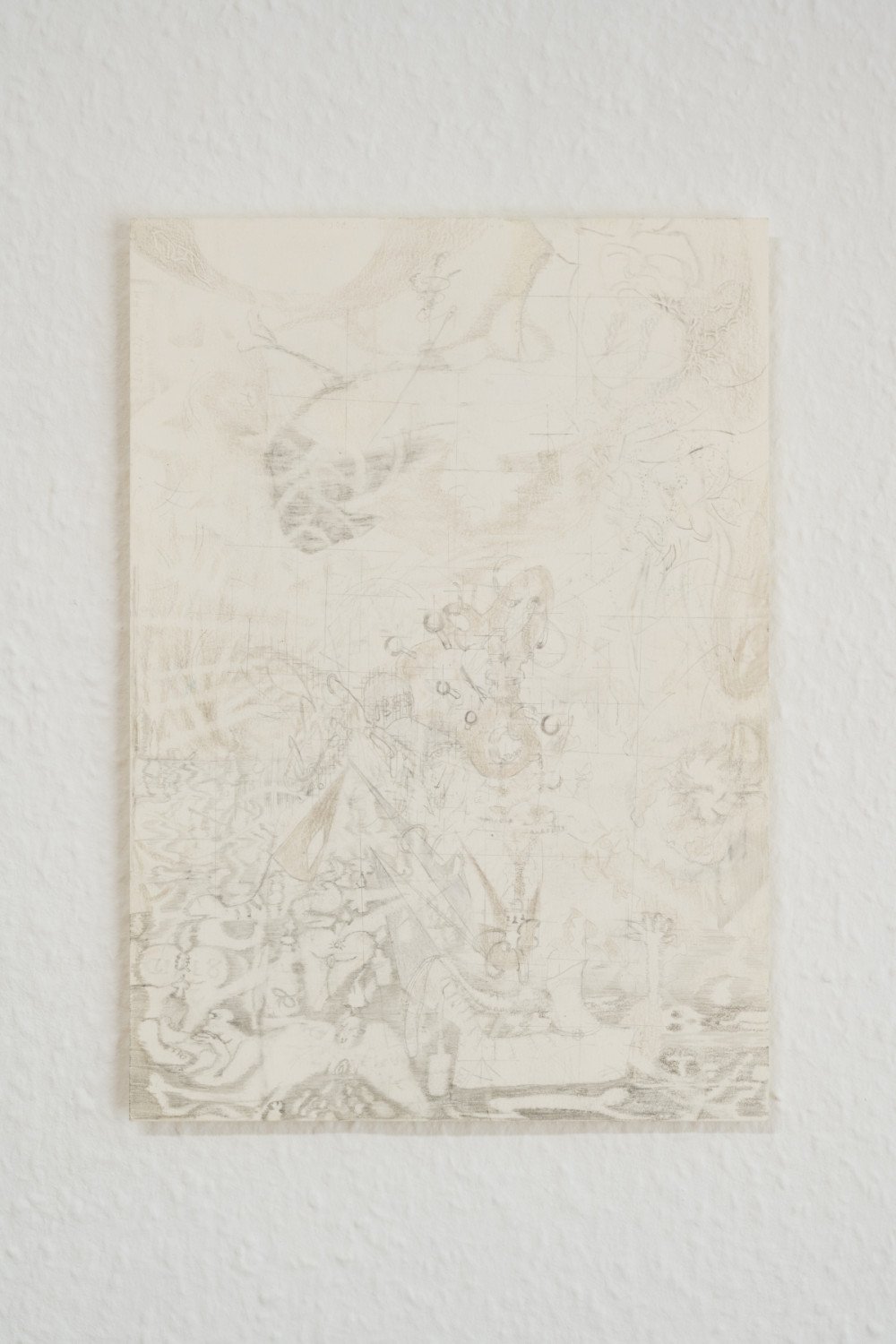 Tomás Maglione. Untitled (from the depressos & kaputcinnos series). Pencil colors and footprints on paper. 29,7 x 21 cm. 2024.