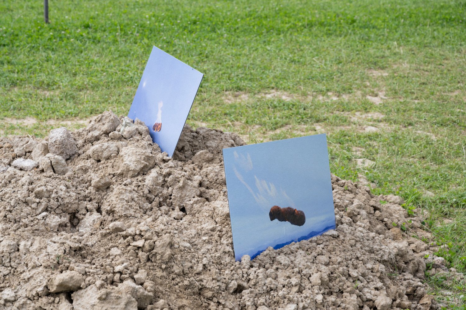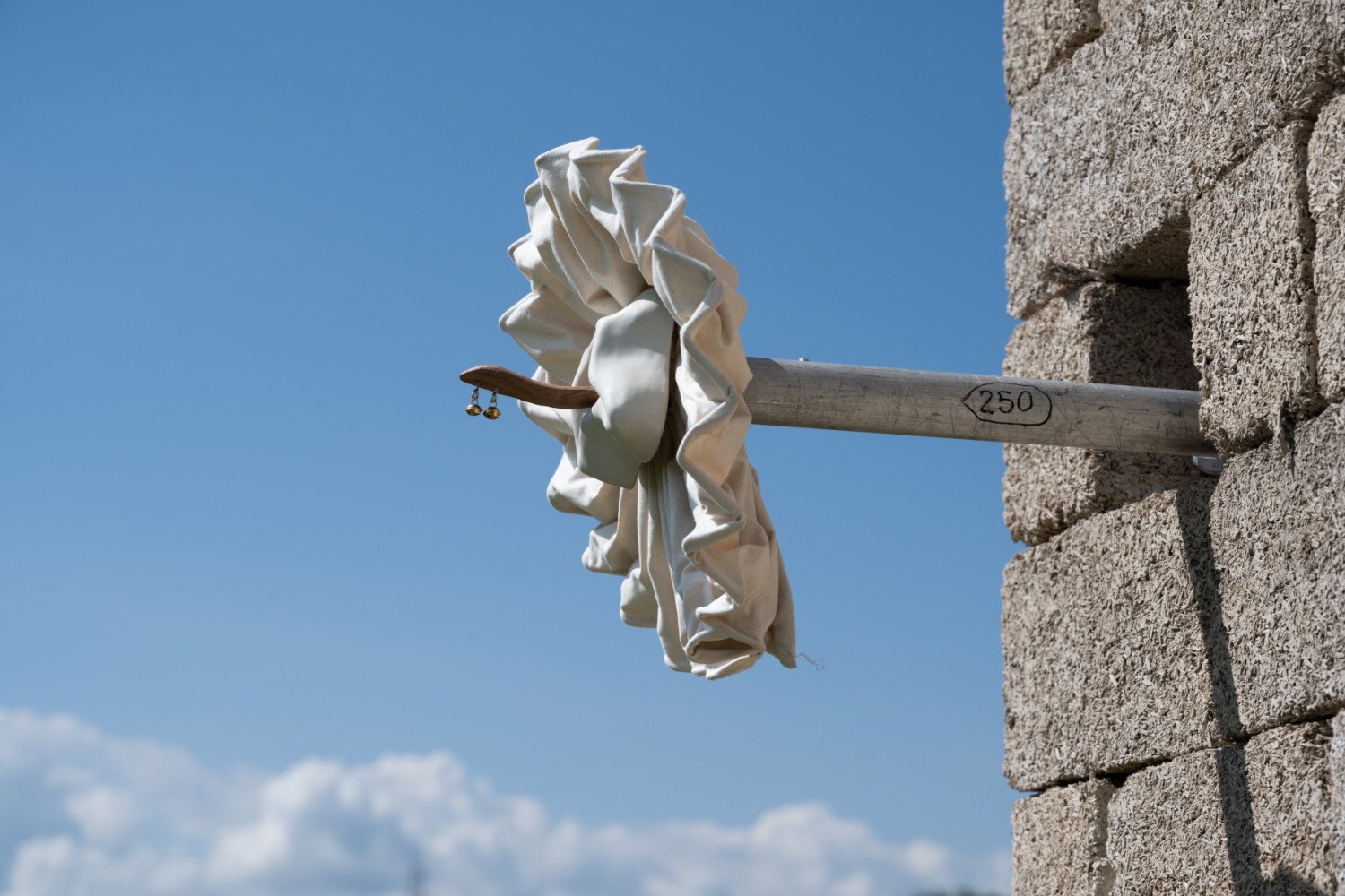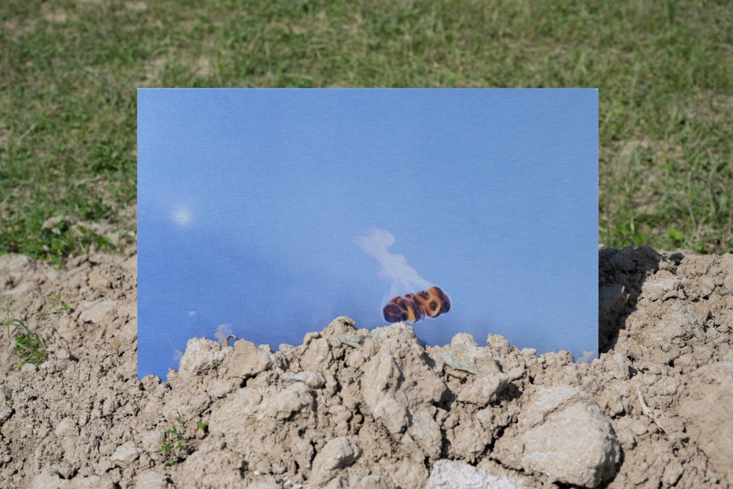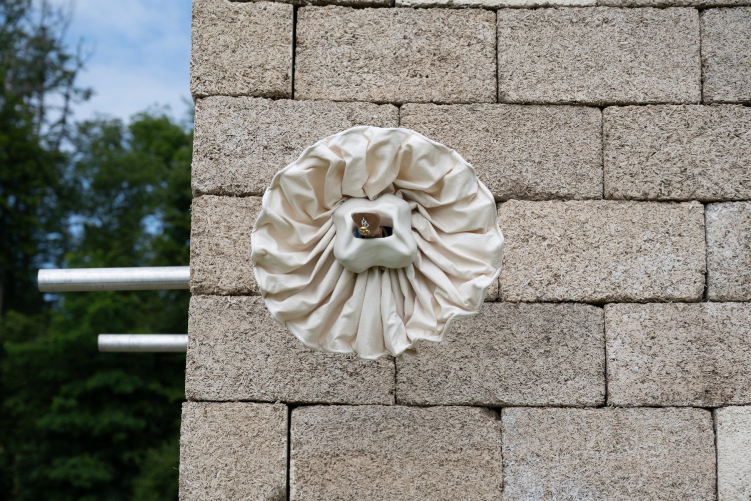 In the third edition of the mobile structure 'On Foot,' artist Gina Proenza has created works that interact with its form, and boundaries, in different ways. Some of her pieces dissolve the exterior of the structure, while others connect to it or turn away.
