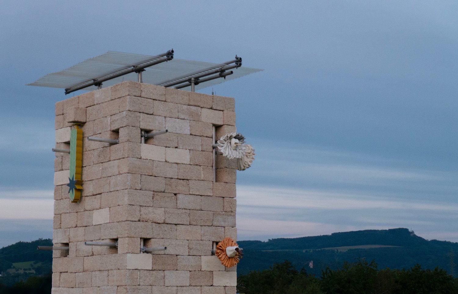 A vertical tower is suddenly revealed to have an unreachable inside and a soft jingle that expands in all directions from outstretched tongues.