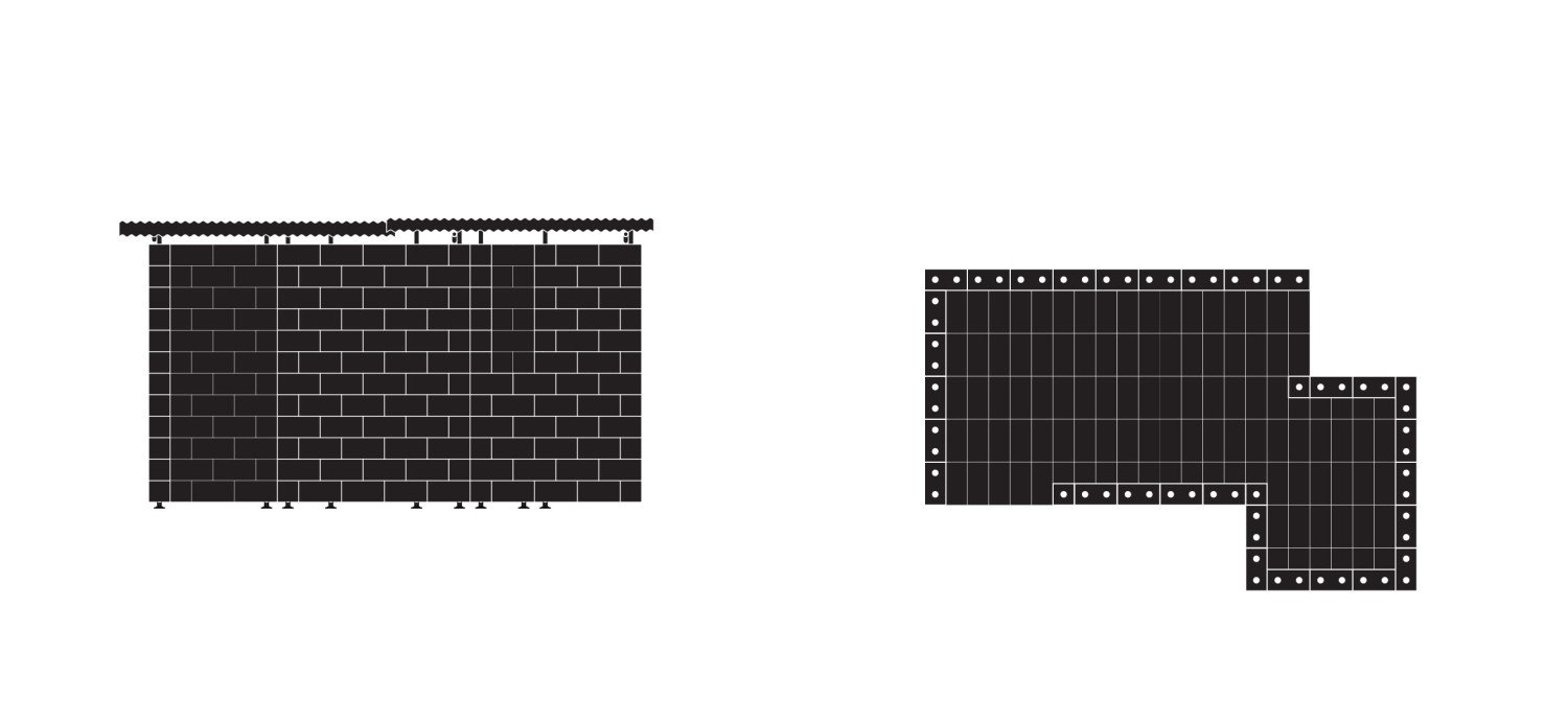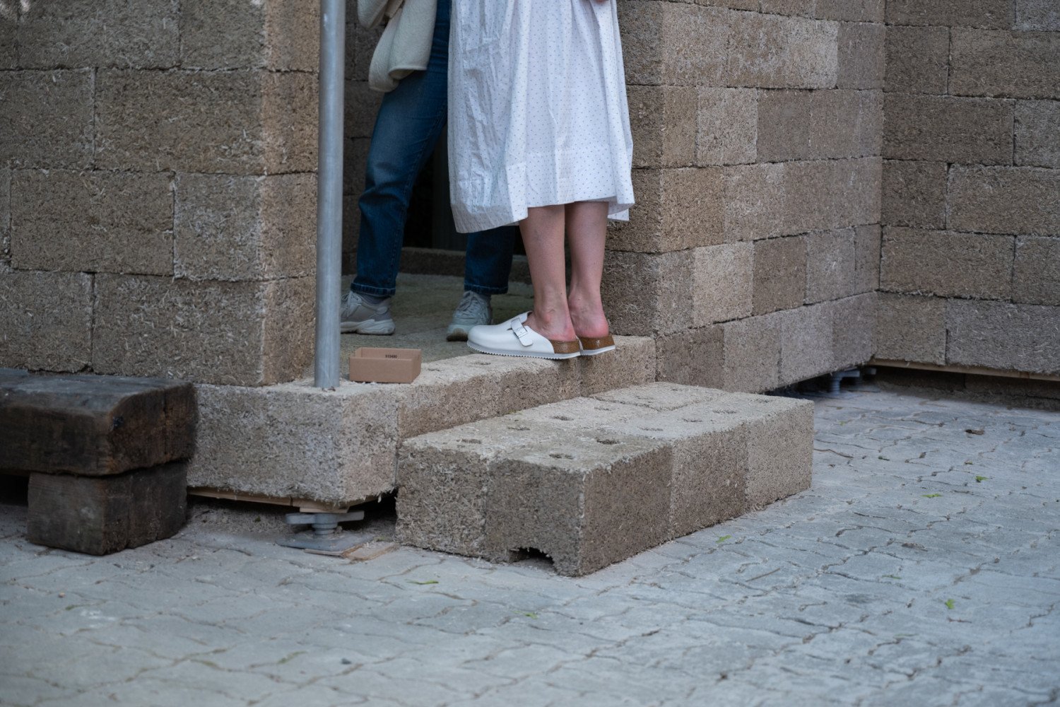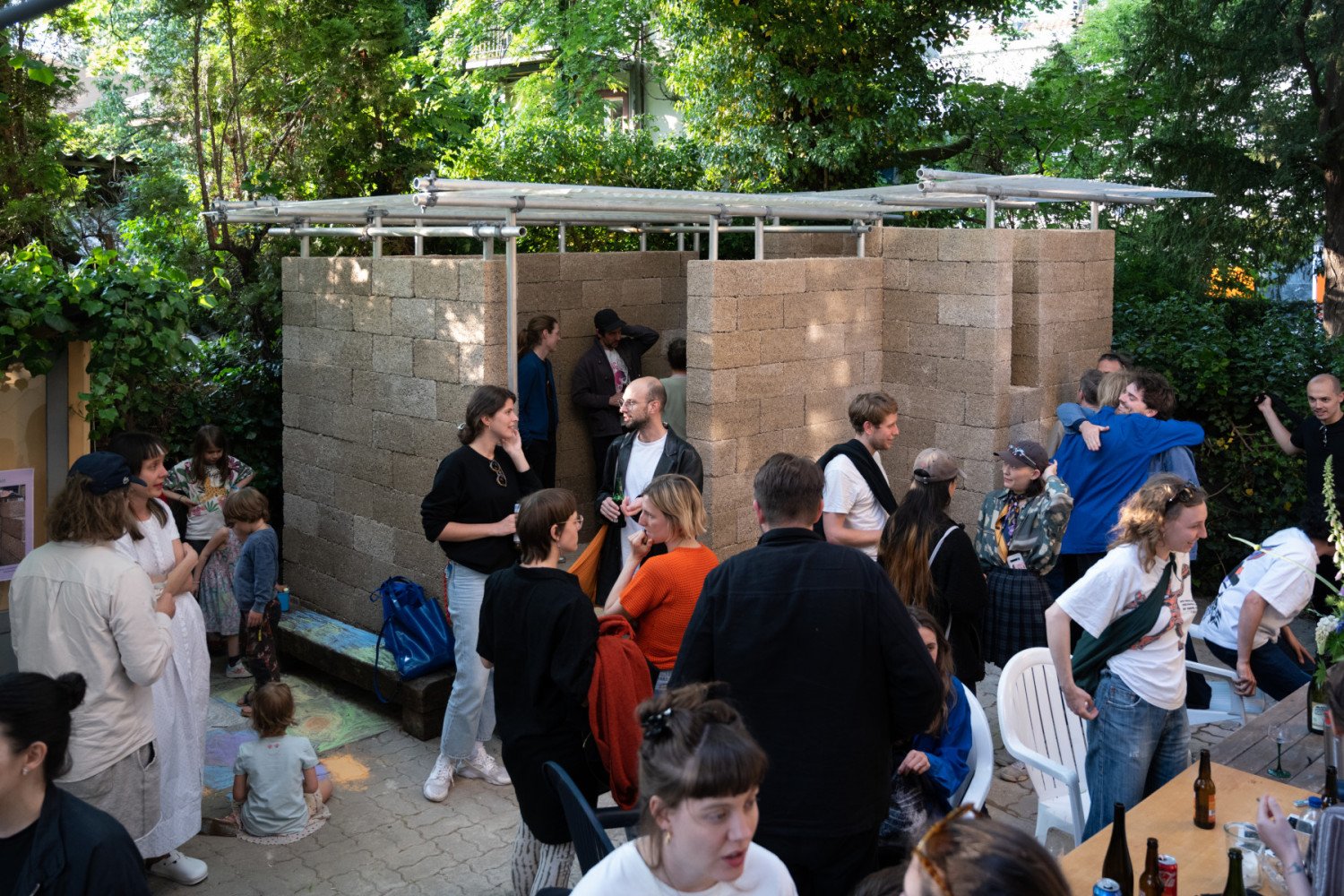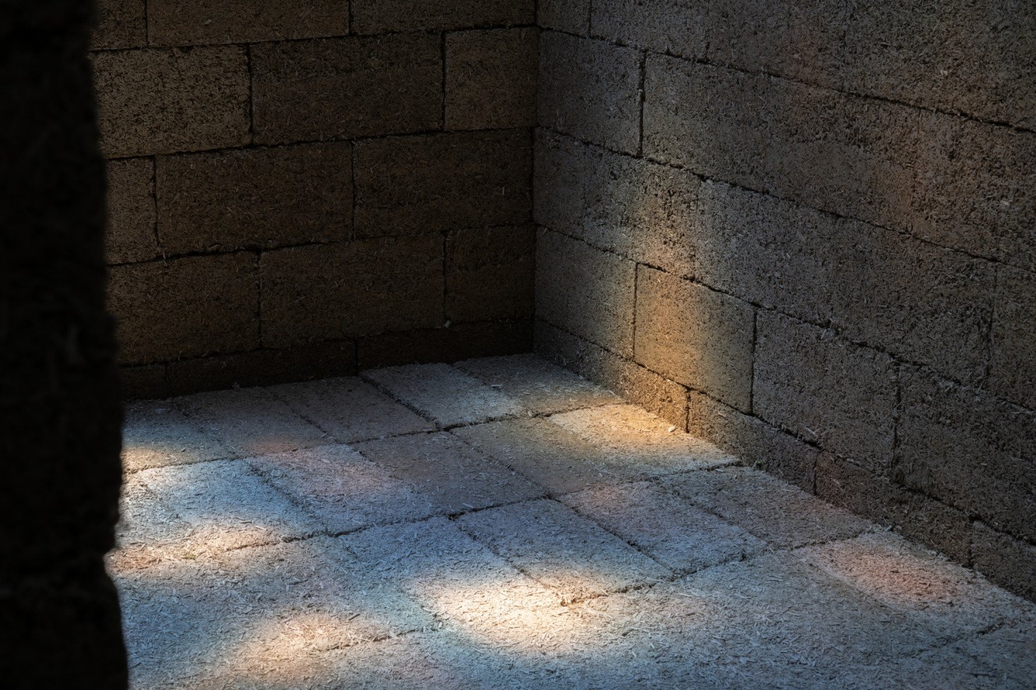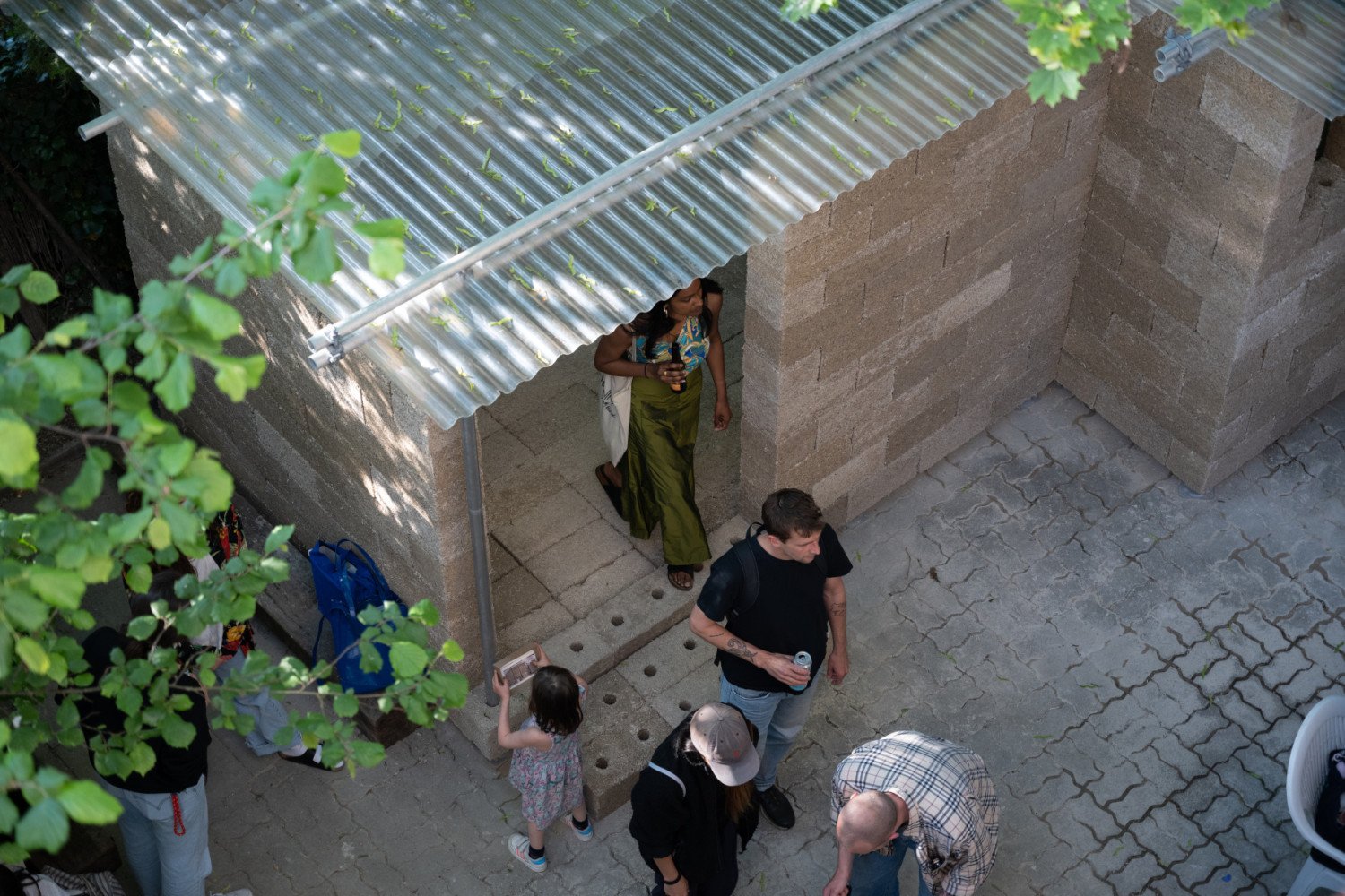 Considered as an extension to our current exhibition space, this structure is made of a mobile and interchangeable stacking system, produced with hempcrete blocks and scaffolding.