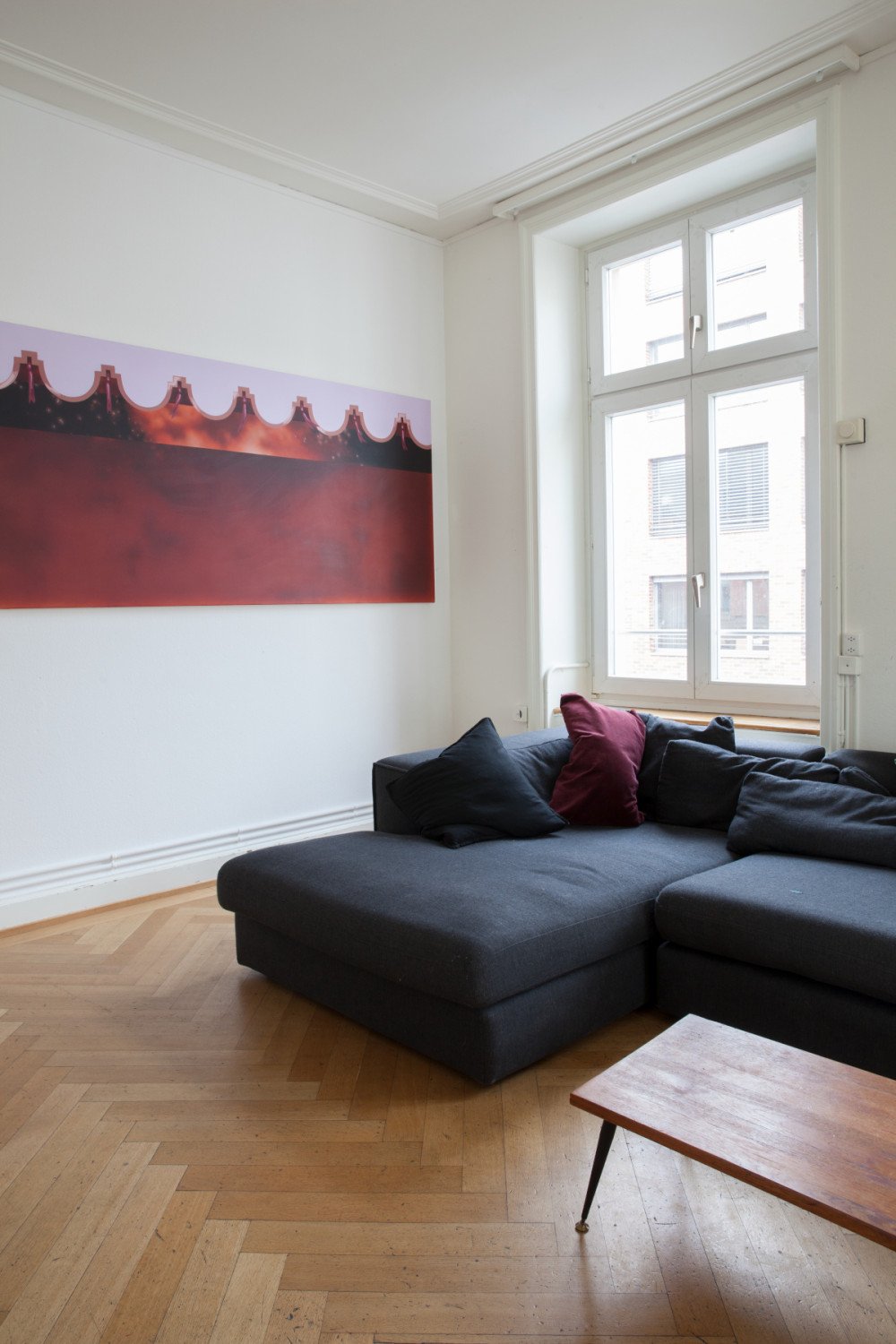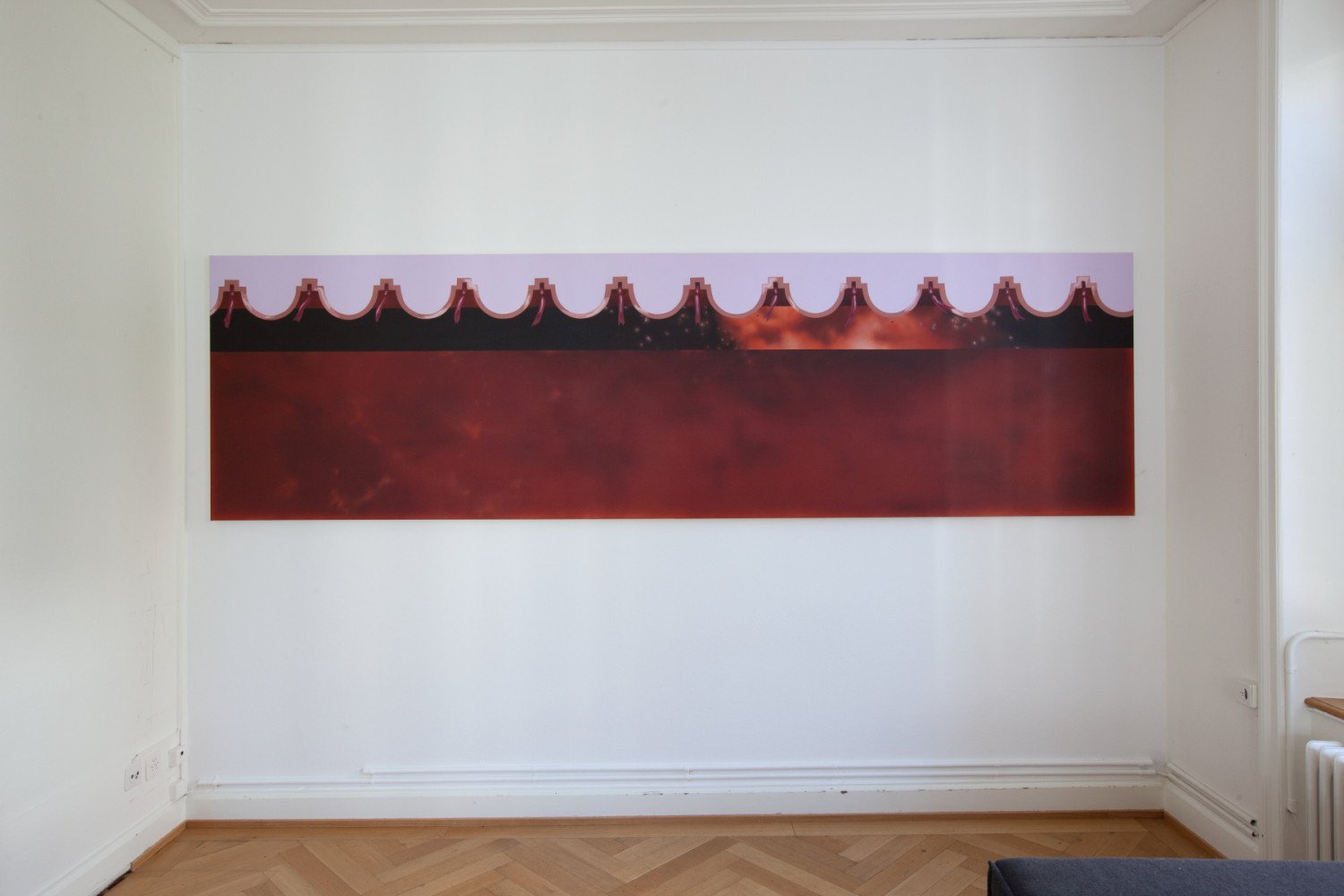 Natacha Donzé. All days, eating all the flowers. Acrylic on canvas, 100 x 350 cm. 2020.