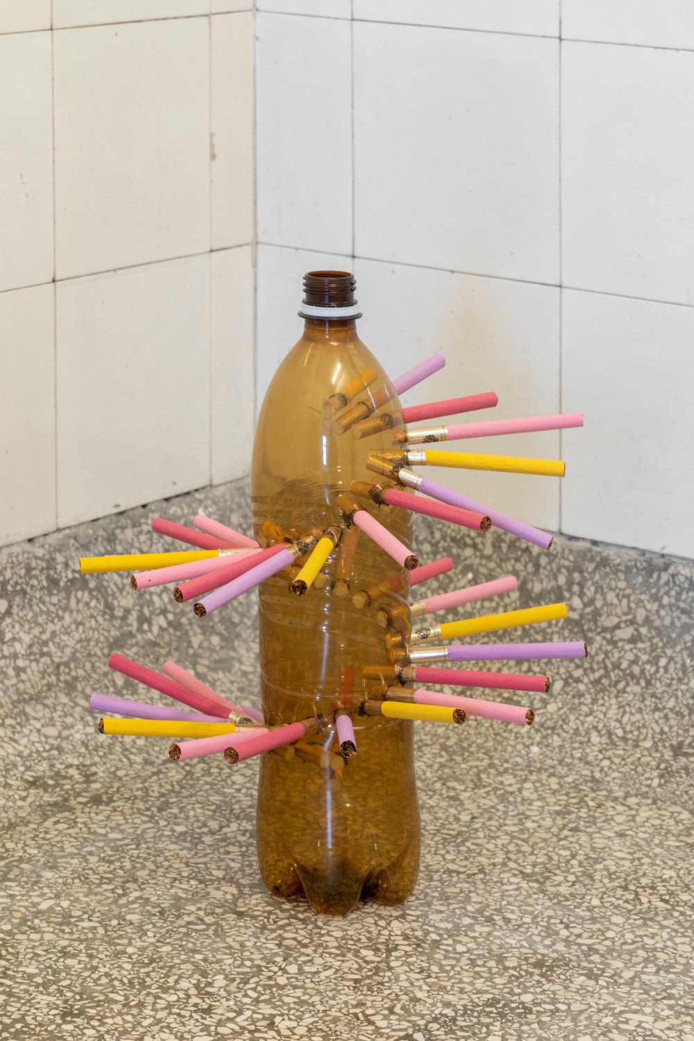 Nusser Glazova. Teenage Angst II. Plastic bottle and Sobranie cigarettes. Variable dimensions. 2022.