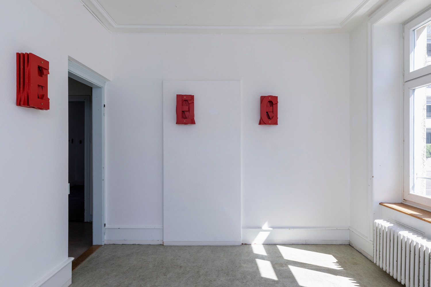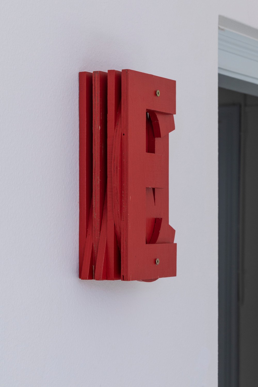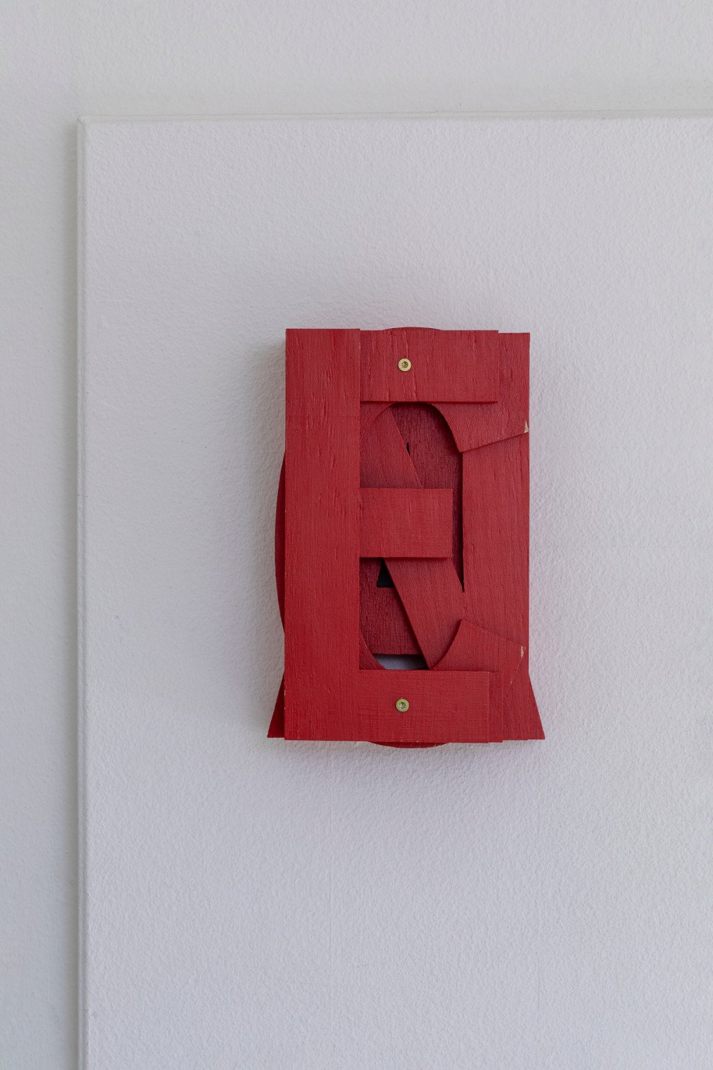 Daniel Kurth. Letters (Balance). Plywood, red paint and screws. 2022.