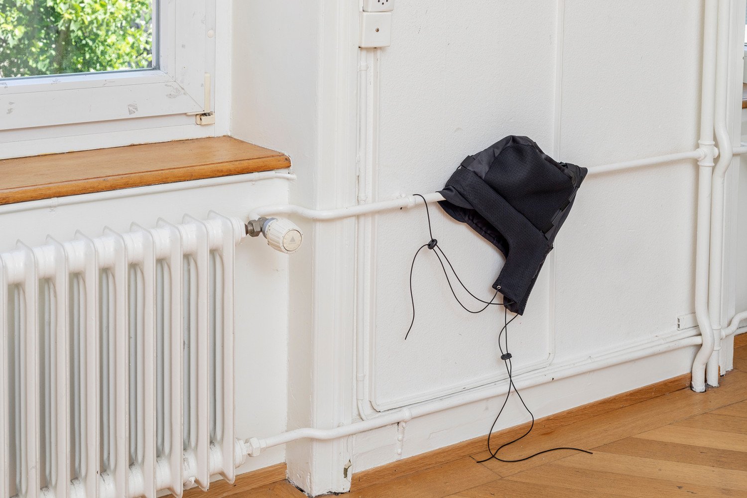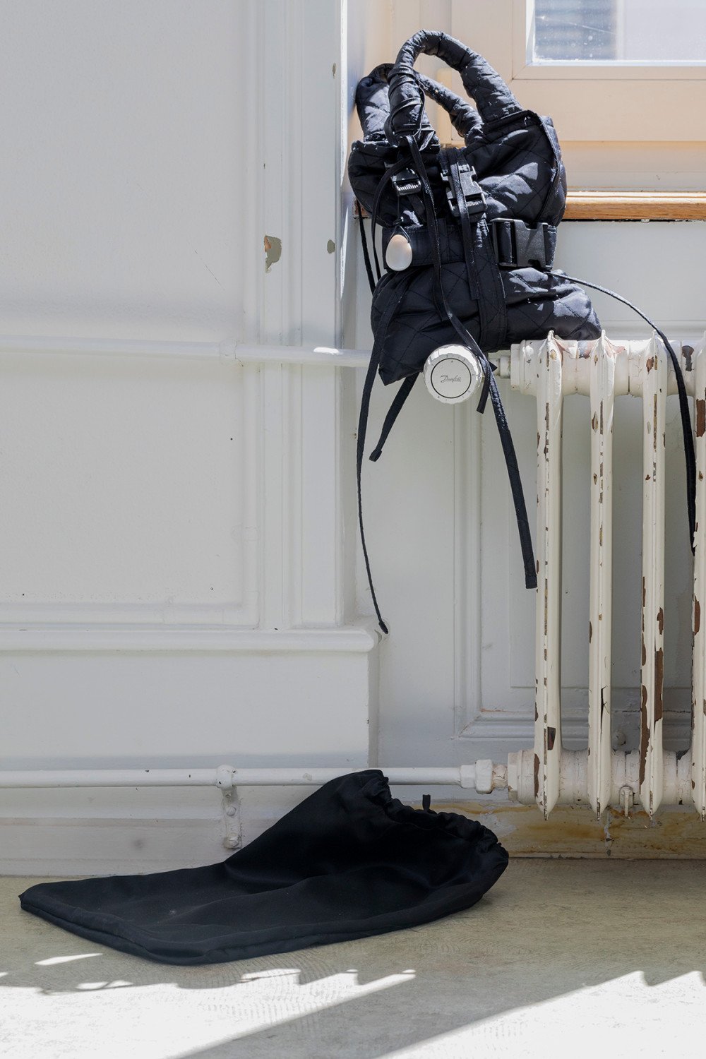 Mirjam Plattner. Saty. Fabric. 120 x 30 cm./ Nival. Fabric, webbing and carabiner. 43 x 25 cm./ Nitida. Fabric, zipper and elastic. 90 x 70 cm. All of them 2022.