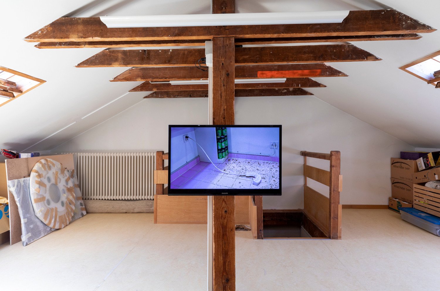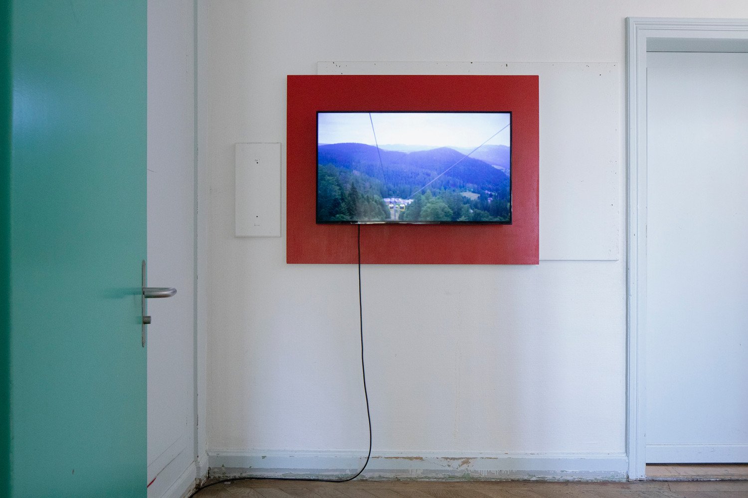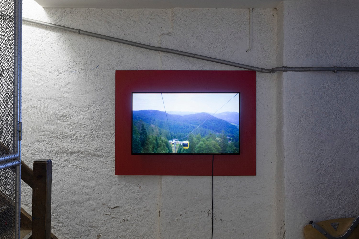Daniel Kurth. The descent I. HD-video, color, sound, plywood, red paint, Loop (06:47). 2022.