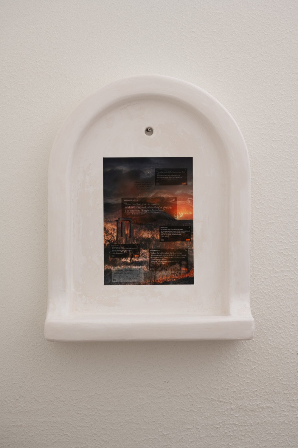 Jennifer Merlyn Scherler. Lipsync is not enough (The Anthems of Rape Culture Loud). Styrodur, acrystal, digital print on archival matte paper. 60 x 46 x 12 cm. 2023.