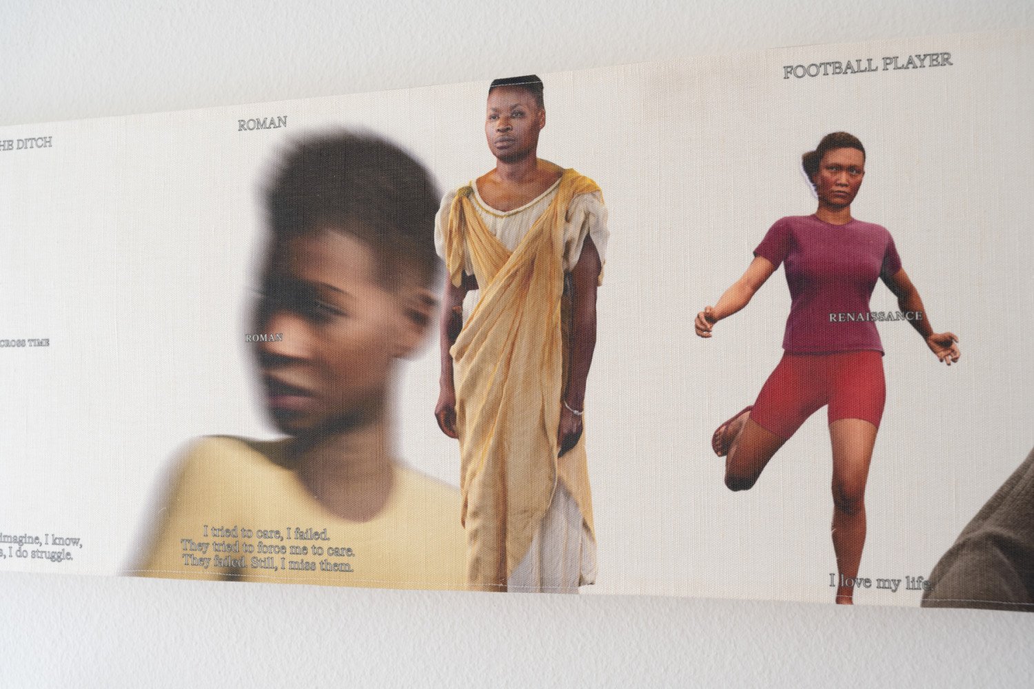 Rhona Mühlebach. Ditch Me - Character Scroll. Digital print on linen, wood. 200 x 80 cm. 2023.