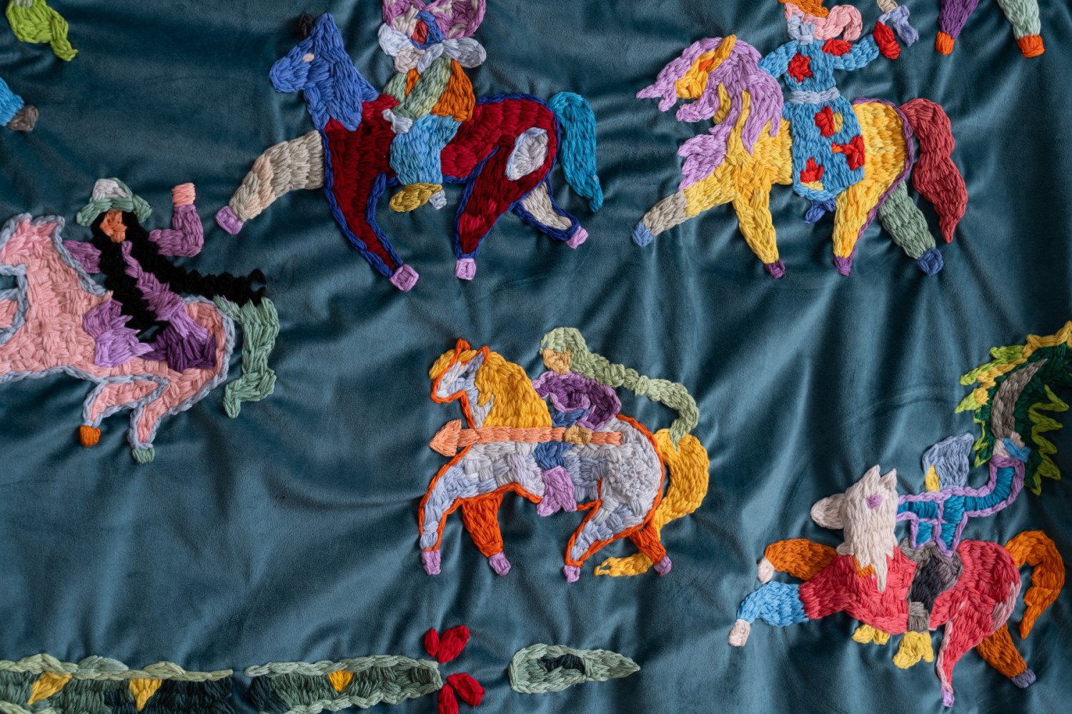 Salome Jokhadze. My Teeth Bite Through Flesh. Fabric and embroidery. 94 x 136 cm. 2024.